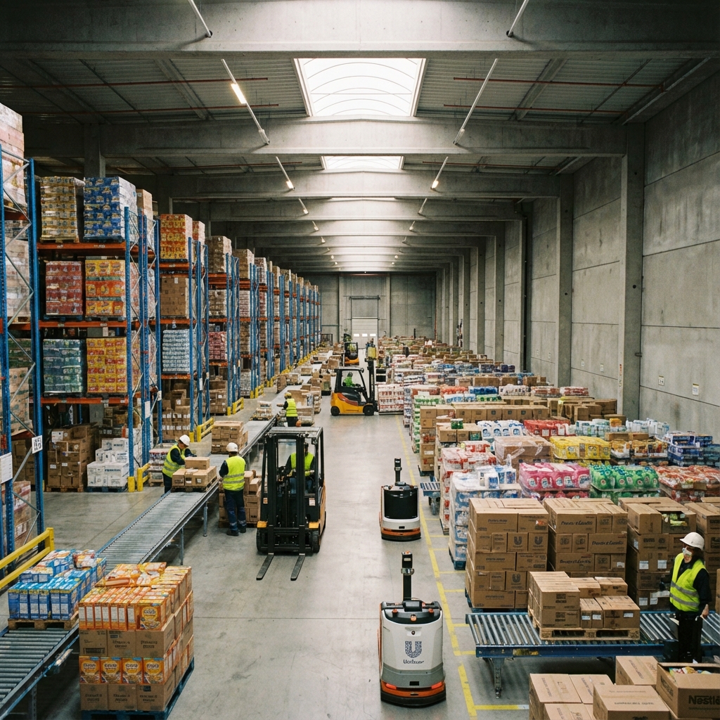 Garantizamos un flujo eficiente para productos de consumo masivo, asegurando disponibilidad constante en góndola y una gestión de inventarios optimizada para el sector retail.